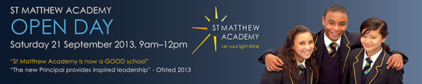I’ve been working on publicity for St Matthew Academy open days; newsletters, press ads, banners, flyers and managing the events. This time of year is crucial for all schools as they set out their stall for parents and year 6 children in the schools marketplace. St Matthew Academy is a south London school with high standards and a reputation for offering their students inspirational experiences outside the classroom.